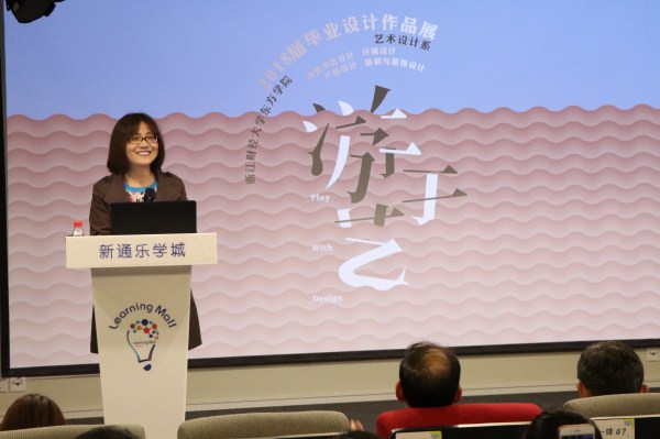 分院院长陆芸致开幕辞,她首先对莅临展览现场嘉宾致谢,并回顾了2014级毕业生学科竞赛、创新创业、学生科研等方面的优异成绩。同时,她解释了本次毕业展的主题“游于艺”的由来,“游于艺”取自《论语•述而》“志于道,据于德,依于仁,游于艺”。她期望毕业学子秉持从艺态度,在“道德仁”的前提下“游艺”,心存高远志向、依据道德标准、依傍内心修养,在专业领域游刃有余,为母校增光。