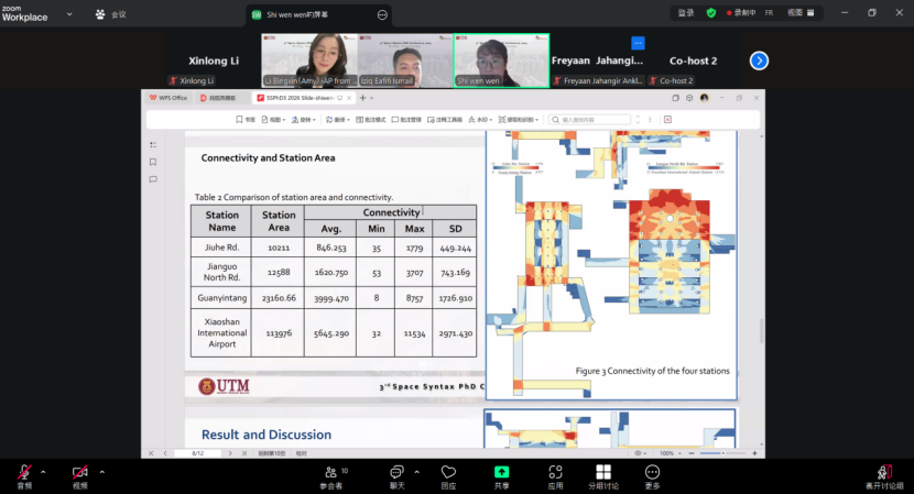 在此次会议中,我院环境设计专业系主任、史雯雯副教授受邀发表长摘要论文《Visual Accessibility and Spatial Structure in Age-Friendly Metro Stations: A Space Syntax-Based Comparative Study》,并在分会场作英文演讲报告。报告基于空间句法中的VGA方法,系统分析了杭州地铁空间结构对老年人可达性与认知负荷的影响。