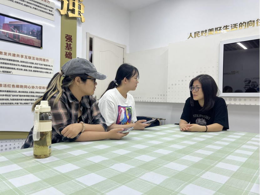随后团队前往月河社区居委会。服务团成员分为两队,一队前往月河社区进行实地考察与色彩取样工作;另一队则与社区接待人员展开了面对面的深入访谈。