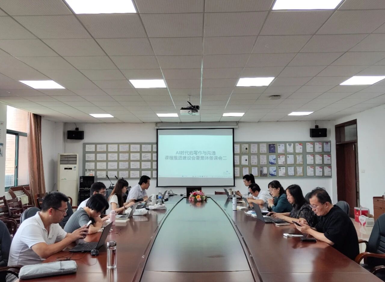 2025年6月22日,文化传播与设计学院已获校级精品通识课程立项的《AI时代的写作与沟通》课程建设推进会在508会议室举行。自年初以来,课程团队齐心协力进行精品通识课程的申报和教学体系重构等重要工作,共同聚焦核心问题,多次研讨后明确了课程体系重构详细方案。本次备课会重点讨论了AI技术的深度融入路径以及创新教学模式的落地策略,课程开发与建设进入攻坚落实阶段。文化传播与设计学院党总支书记陈明亮、院长吴智斌、副书记王中斐、中文系主任郭振伟及课程组全体教师与会。
