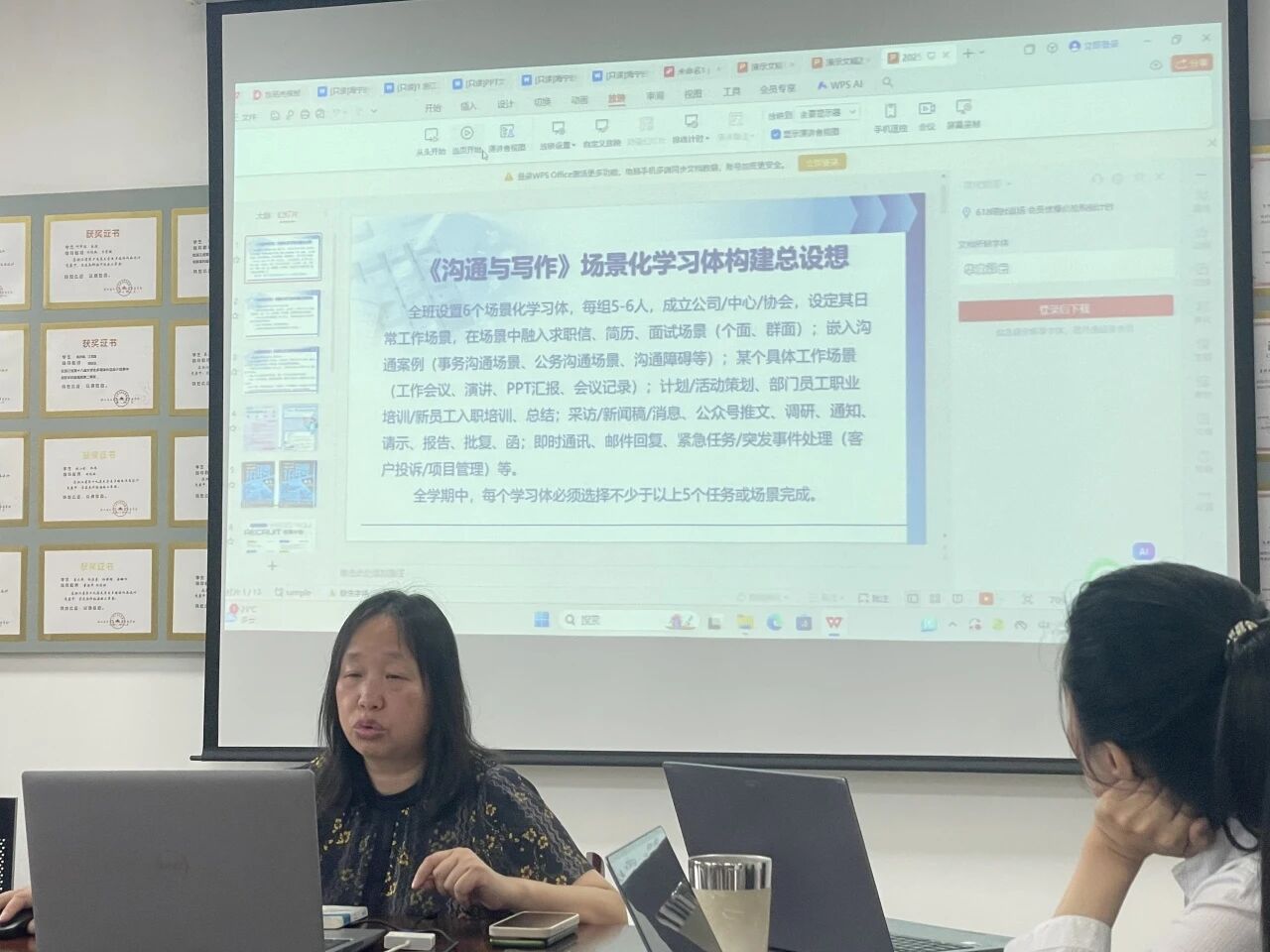 本次备课会之前,课程组教师已经根据课程部署,完成了新体系相应的教学内容准备;部分教师还在会上详细分享了上一轮授课中“应用写作新文科试点班”在真实场景嵌入与AI辅助教学方面积累的成熟经验与素材库。会议进一步明确了各实训模块的备课要求,并据此细化、下放了下一阶段的具体备课任务,并在场景串联方式、文种必讲选讲的确定、期末考核方式和具体题型等重要方面达成共识。