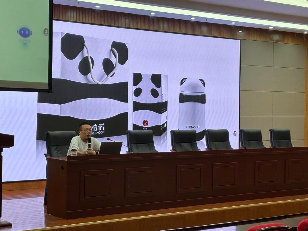讲座中,沈总以“小设计、大未来”为切口,亲切地分享了他的工业设计之路。他从大学时期的学习方法讲起,再谈到创办腾赢设计的初衷。公司刚成立时,他就开始思考如何与洛可可、飞鱼、瑞德等业内知名设计公司进行差异化竞争。经过多方考察,最终将主业聚焦于日用品设计,并专程前往日本学习先进的设计理念与趋势。此后,随着业务深化,公司进一步将重心聚焦到水杯设计。他特别提到,其团队设计的“熊猫水杯”单品销售额高达一亿元,切实帮助客户取得了巨大的市场成功。