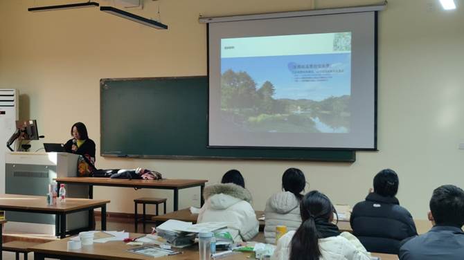 为进一步搭建课堂与行业的桥梁,在产业教授陈超的积极引荐下,课程特别邀请到深圳市新城市规划建筑设计股份有限公司浙江分公司高级工程师吴善佳莅临授课。2025年11月27日上午,吴善佳以《一草一木皆设计:行业视角下的植物搭配艺术》为题,为24环境1班的同学们带来了一场干货满满的实践经验分享讲座。