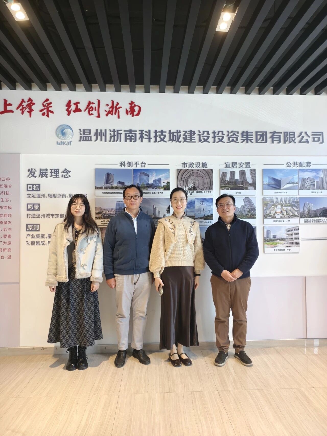 随后,一行人前往温州浙南科技城建设投资集团有限公司,走访我院12届文学专业优秀校友张瑜瑜。交流中,张瑜瑜校友深情回顾了在母校的求学时光,分享了自己从校园走向职场的职业发展历程,言语间满是对师长教诲的感念。她始终心系母校发展,结合自身行业经验,为学院“十五五”规划编制积极建言献策,提出诸多富有建设性的意见,助力学院在学科建设、人才培养、校企合作等方面提质增效。