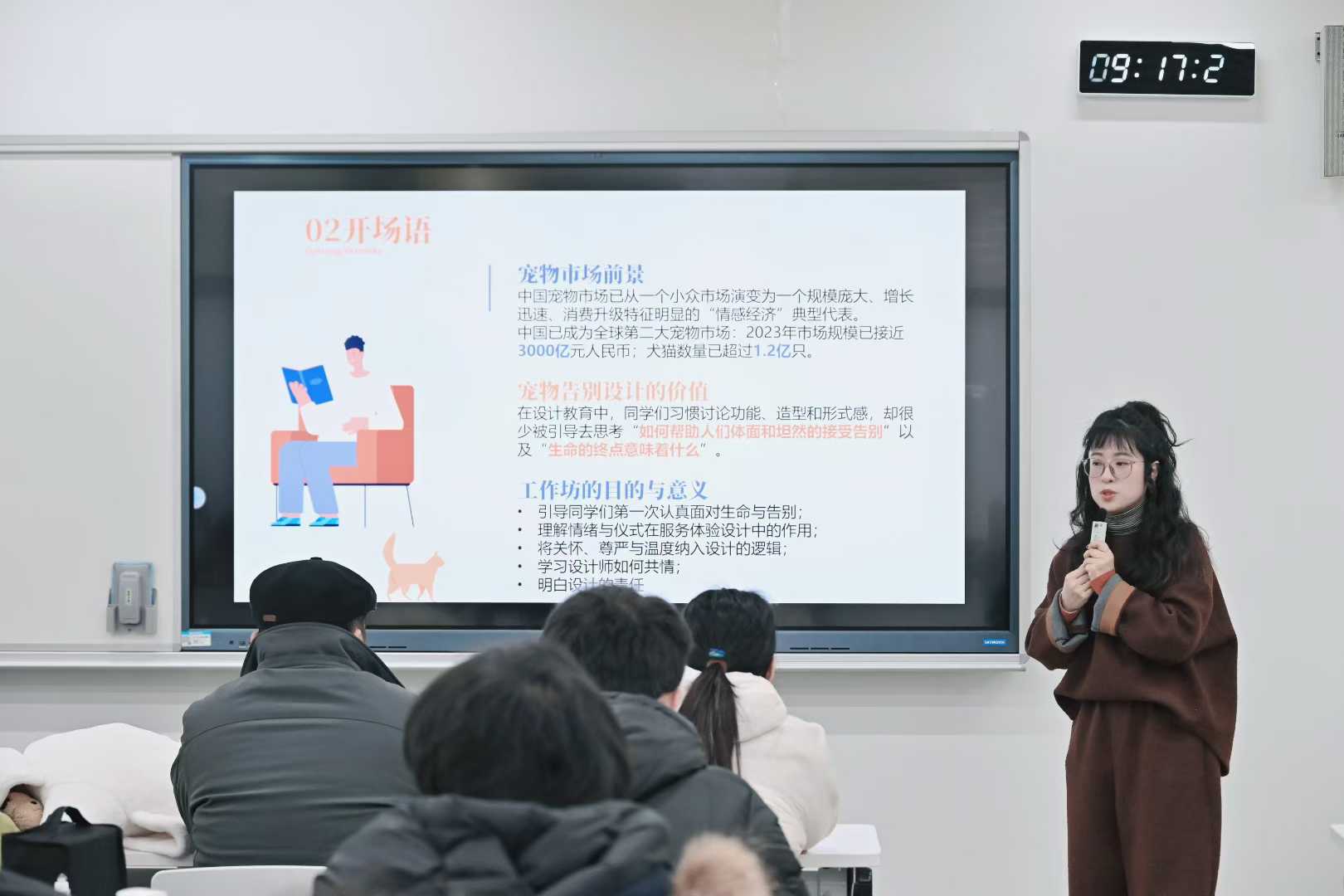 本次工作坊是行业联动、真实场景教学、跨学科合作的尝试。工作坊邀请了宠物告别行业的专业服务人员介绍告别流程、设计师及相关专业教师参与旅程地图展示与共学点评环节,共同呈现宠物终程服务流程、空间结构、仪式内容等专业知识,让学生得以从产业视角理解服务体系的完整性与复杂性。