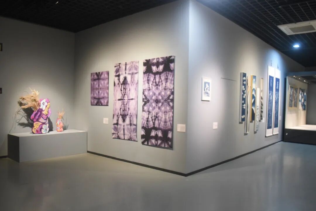 在展览现场,师生们循着导览脉络,深入了解展览背后的文化逻辑与工艺细节。展厅内,艺术摆件、装置等多种形式的作品,既展现了天然染料根植土地的自然属性,也呈现了其在当代艺术与设计中的创新表达——从传统草木染的细腻色泽到跨界材料的染色实验,从对历史色彩记忆的复原到围绕当代社会议题的观念创作,让师生们深刻认识到天然染料不仅是非遗保护对象,更是连接历史与当代、本土与全球的手工艺媒介。