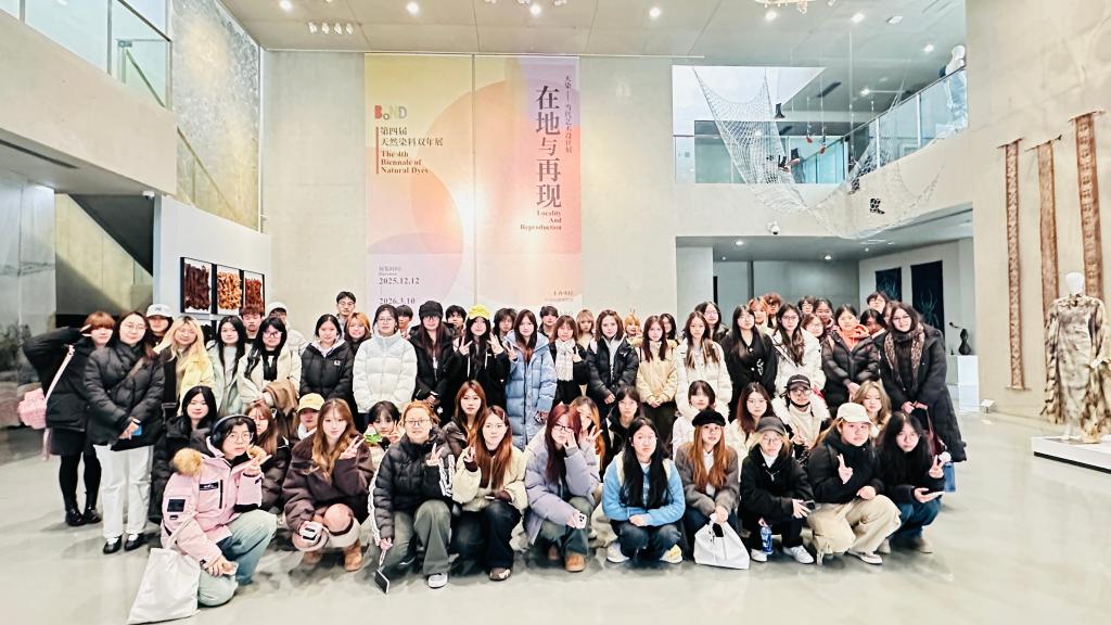 上午的中国丝绸博物馆之行,以本届天然染料双年展为核心研学载体,让传统手工艺教学实现了“观展即课堂”的沉浸式体验。据悉,该展览由中国丝绸博物馆主办,中国美术学院文化遗产研究中心、杭州师范大学美术学院和浙江理工大学承办,以“在地”与“再现”为主题,汇聚了来自中国、印度、德国、日本等近10个国家的130位艺术家与研究者的创作作品,集中呈现天然染料在不同文化语境中的当代表达,与服装专业“服饰手工艺”课程中“传统工艺应用”“面料创作”等核心模块高度契合。