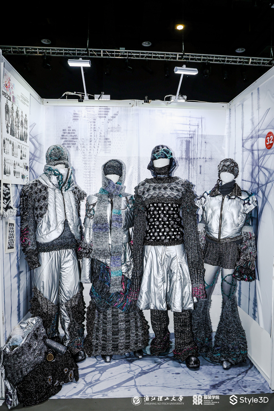 作品巧妙融合传统针织工艺与现代设计语言,以独特的艺术视角诠释了数字时代下“边界消融”的生活理念。在第二届全国大学生服装服饰创意设计大赛总决赛中,团队不仅完成了4套实物作品的制作与静态展示,更在现场答辩环节以清晰的构思阐述、创新的设计理念和可行的商业应用方案,赢得了评审专家的一致高度评价,最终从众多强手中脱颖而出,斩获最高奖项。