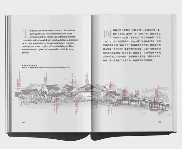 据悉,《行走江南园林》系列丛书的编纂有着坚实的学术基础,其雏形源于2024年春在法国凡尔赛举办的“行走江南园林”展览。该丛书由长江学者、同济大学长聘特聘教授、景观学系主任章明教授主编,汇聚国内顶尖园林学者,精选豫园、寄畅园、网师园、何园等江南名园,以“说园”“游园”“品园”为线索,通过通俗易懂的文字、丰富的视觉呈现及中英双语对照,带领全球读者以“纸上行走”的方式领略诗意栖居的江南园林。