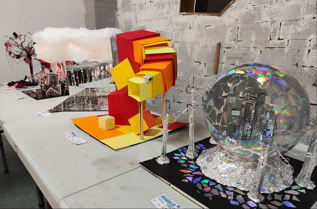 展览现场作品形式多样,构思新颖,涵盖平面构成、半立体构成和立体构成三大板块。同学们从自然形态、几何逻辑、材料特性、光影视觉等多个维度切入,创作了一系列兼具实验性与观赏性的构成作品。每一件作品不仅是对构成原理的阐释,更是同学们独特观察视角与创新潜质的生动表达。