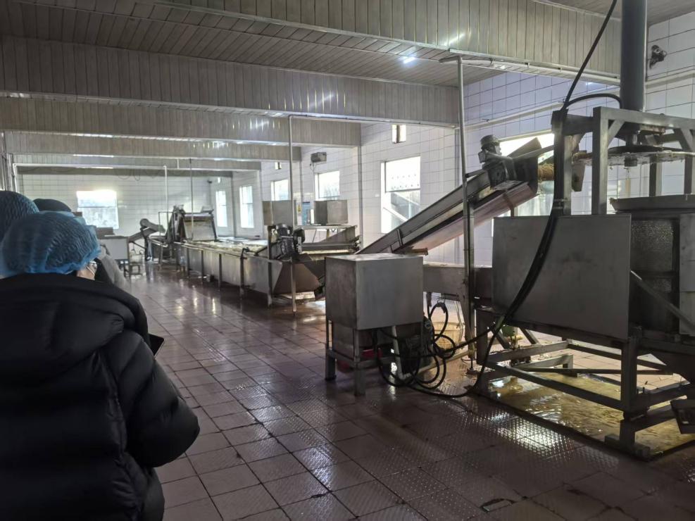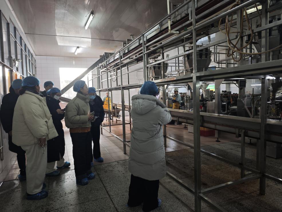 紧接着,办公室主任吴建勤带领师生们走进生产车间,一条完整的榨菜生产链在眼前徐徐展开:浸泡池中,新鲜榨菜在清水里褪去青涩;修剪台前,工人们指尖翻飞,精准剔除老茎菜耳,保留最鲜嫩的部分;切丝机高速运转,均匀的菜丝簌簌落下;脱水车间里,机械臂稳稳抓起榨菜包,相较于昔日人力挑运,效率提升数倍;拌料区中,盐、辣粉、花椒等调料按精准比例混合,勾勒出刻在国人记忆里的鲜香;最终,经过全自动灌装机的封装,一袋袋标准化的榨菜完成制作,即将走向千家万户。