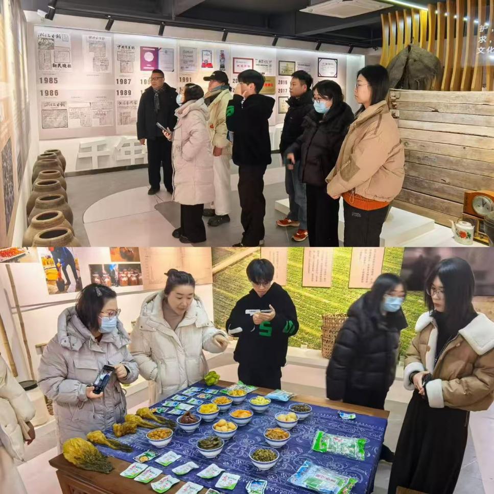 潮起钱塘,味漫斜桥。当冬日的暖阳洒满海宁大地,一场连接青春学子与非遗美食的邂逅,在斜桥榨菜的鲜香中悄然开启。2026年1月22日,浙江财经大学东方学院文化传播与设计学院的师生一行踏上了前往海宁斜桥的实践调研之行。此行的目的地并非网红打卡点,也不是艺术展馆,而是一家深藏于江南水乡肌理中的老字号——斜桥榨菜厂。在这里,我们试图从一碟咸鲜脆爽的榨菜中,读出时间的味道、产业的脉动,以及乡村振兴的另一种可能。