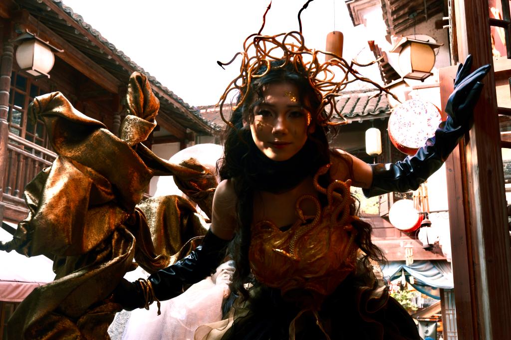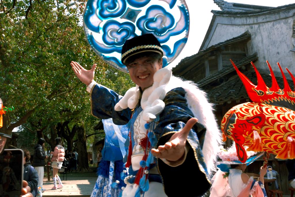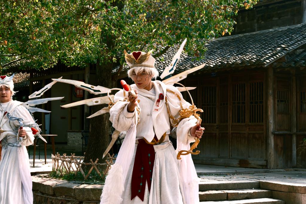 古镇巡游更是将氛围推向高潮,造型各异的NPC身着特色服饰穿梭古巷,奇幻国风与江南古韵奇妙交融,成为一道亮眼风景线。同学们驻足观赏、沉浸式感受,为这场研学之旅增添了别样欢乐。