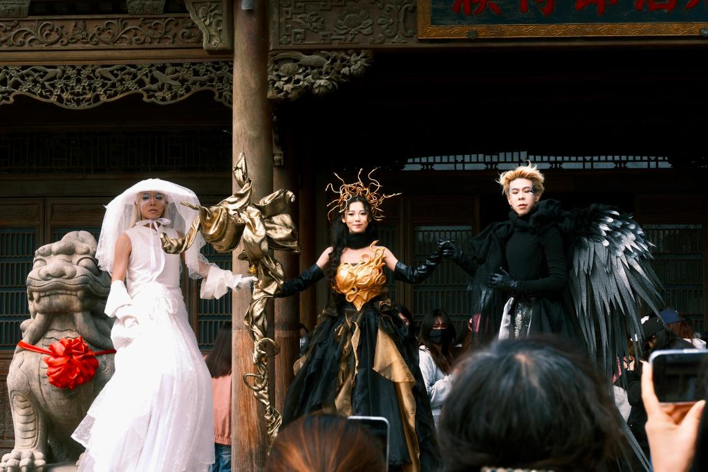 青砖黛瓦的古建与现代时尚展陈交相辉映,从集体合影的青春朝气,到漫步展场的专注探索,大家在传统与潮流的交融中感受视觉美学的魅力,让课堂所学在古镇的鲜活氛围里落地生长。