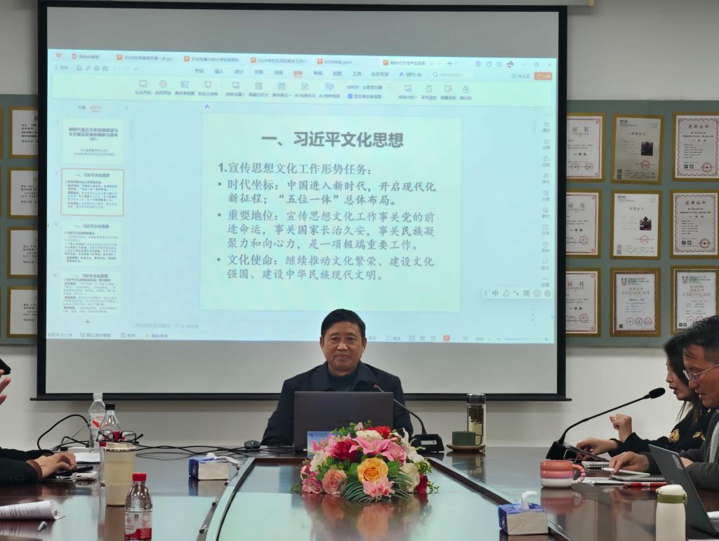 为深入学习贯彻习近平文化思想,精准把握新时代浙江文化强省建设与文艺繁荣发展实践路径,文设学院特邀原浙江省委宣传部文艺处处长、省文明办副主任刘如文同志开展《新时代浙江文化高地建设与文艺繁荣发展的观察与思考》专题讲座,文设学院教工党支部书记吴欢超主持讲座,文设学院教工党员、学生辅导员和新传学科教师到场学习。