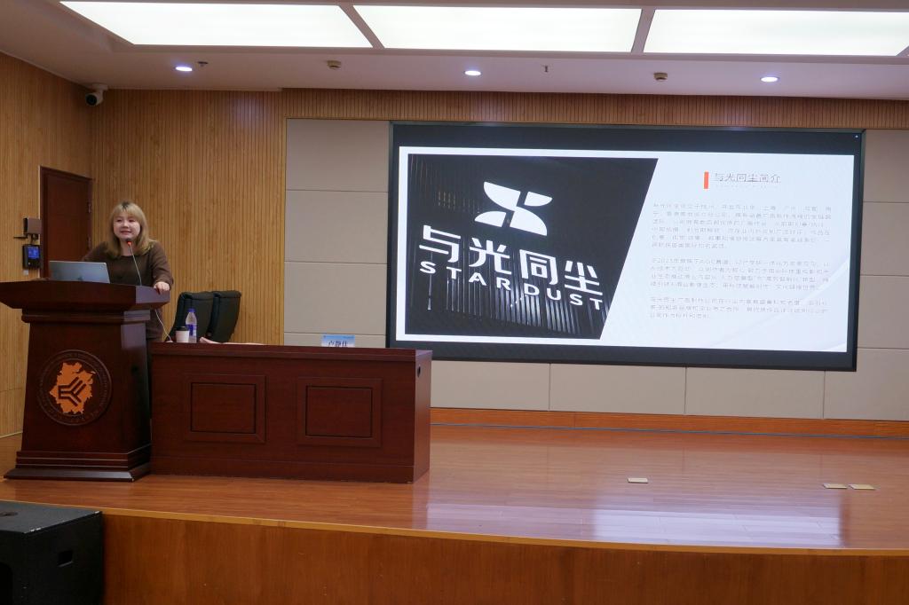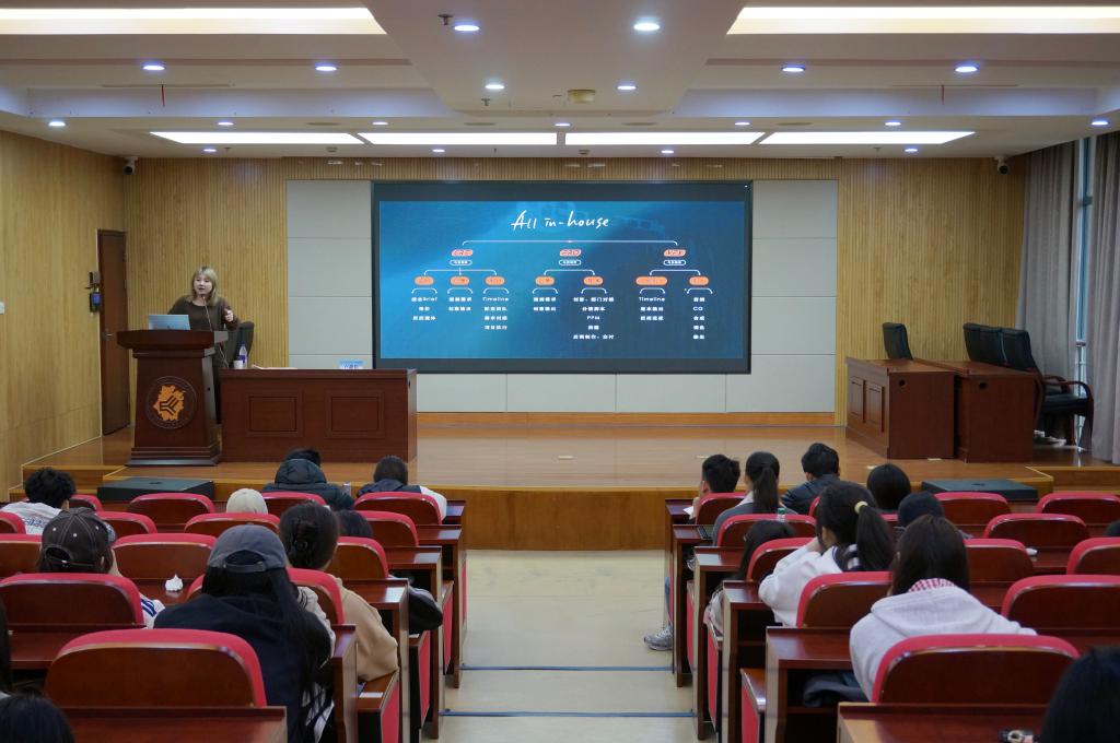 卢静佳介绍了与光同尘文化科技有限公司的发展历程与标杆作品,让同学们对行业头部企业的业务生态有了直观认知。随后拆解了传统TVC广告从创意策划、拍摄执行到后期制作的全流程,帮助同学们清晰梳理了行业岗位与用人需求。在此基础上,她结合公司优秀商业案例,深度解析了AIGC影像的完整制作流程,全面解读了AI视频在商业领域的应用现状与未来趋势,为同学们展现了技术赋能影视创作的全新可能。